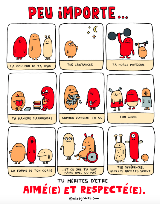 Elise Gravel is one of my favourite authors, and students find her work very accessible thanks to her illustrations. She has created a page on her blog with resources that teachers can download in full resolution and use in their classes, which you can find here. These resources cover a range of topics that could apply to a classroom discussion coming out of this book, including accepting differences, who are refugees, and an explanation of climate change.