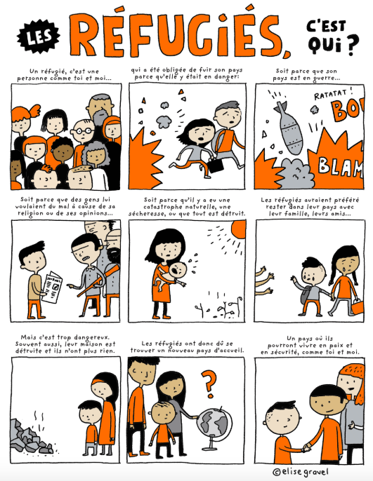 Here’s a short video from the website 1jour1actu, which has an excellent ongoing series that takes questions submitted by kids and responds to them in video form. This series, called 1 jour, 1 question, includes this video on refugees: