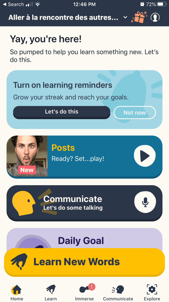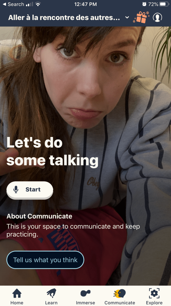 | Personalization principle | Put words in conversational style | This feature is only available in the app and is not customizable. Using the “Immerse” and “Communicate” features, students will both hear and produce language in a conversational style. |